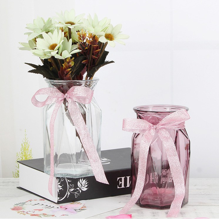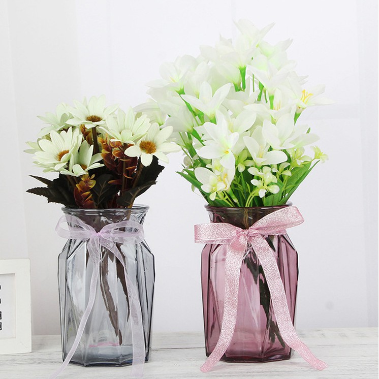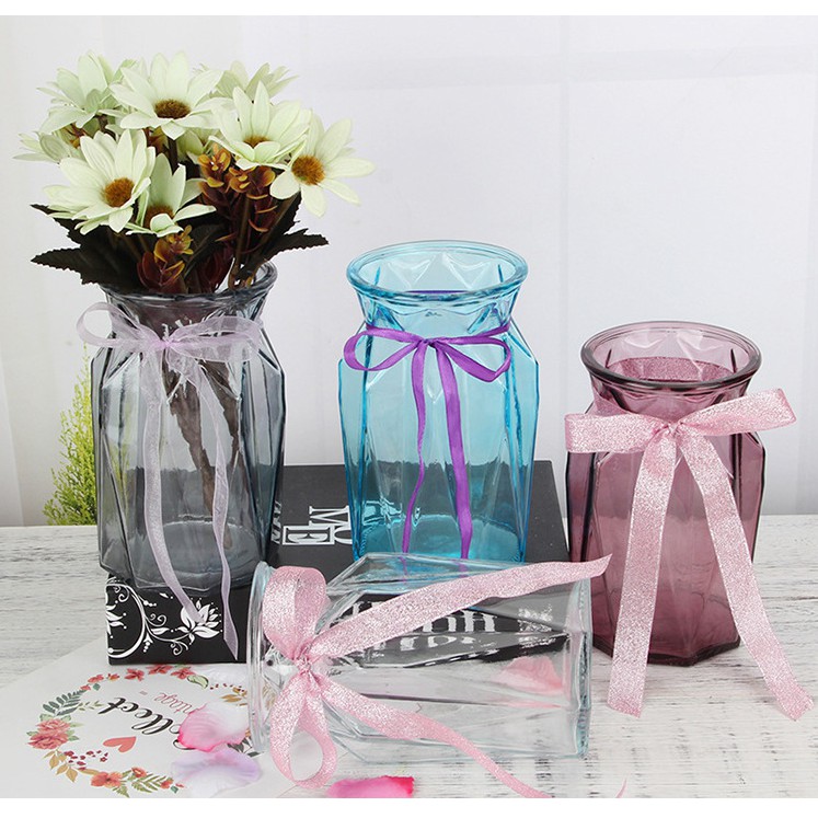 Nhà cửa & Đời sống > Trang trí nhà cửa > Bình trang trí || [TẶNG NƠ] Lọ Cắm Hoa Thủy Tinh Lục Giác Cao Cấp Nhiều Mầu Sắc Cổ Thắt NơCòn hàng