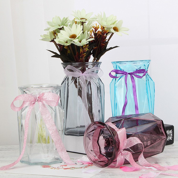 [TẶNG NƠ] Lọ Cắm Hoa Thủy Tinh Lục Giác Cao Cấp Nhiều Mầu Sắc Cổ Thắt Nơ