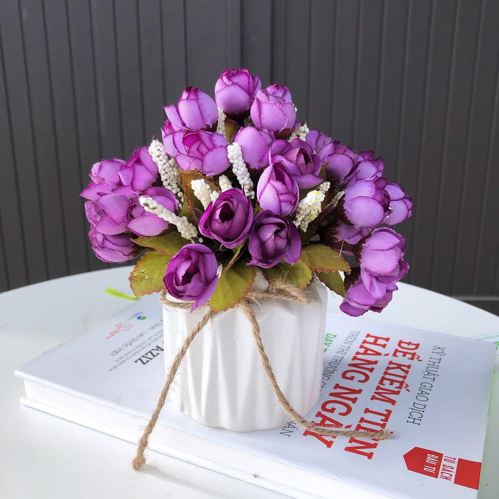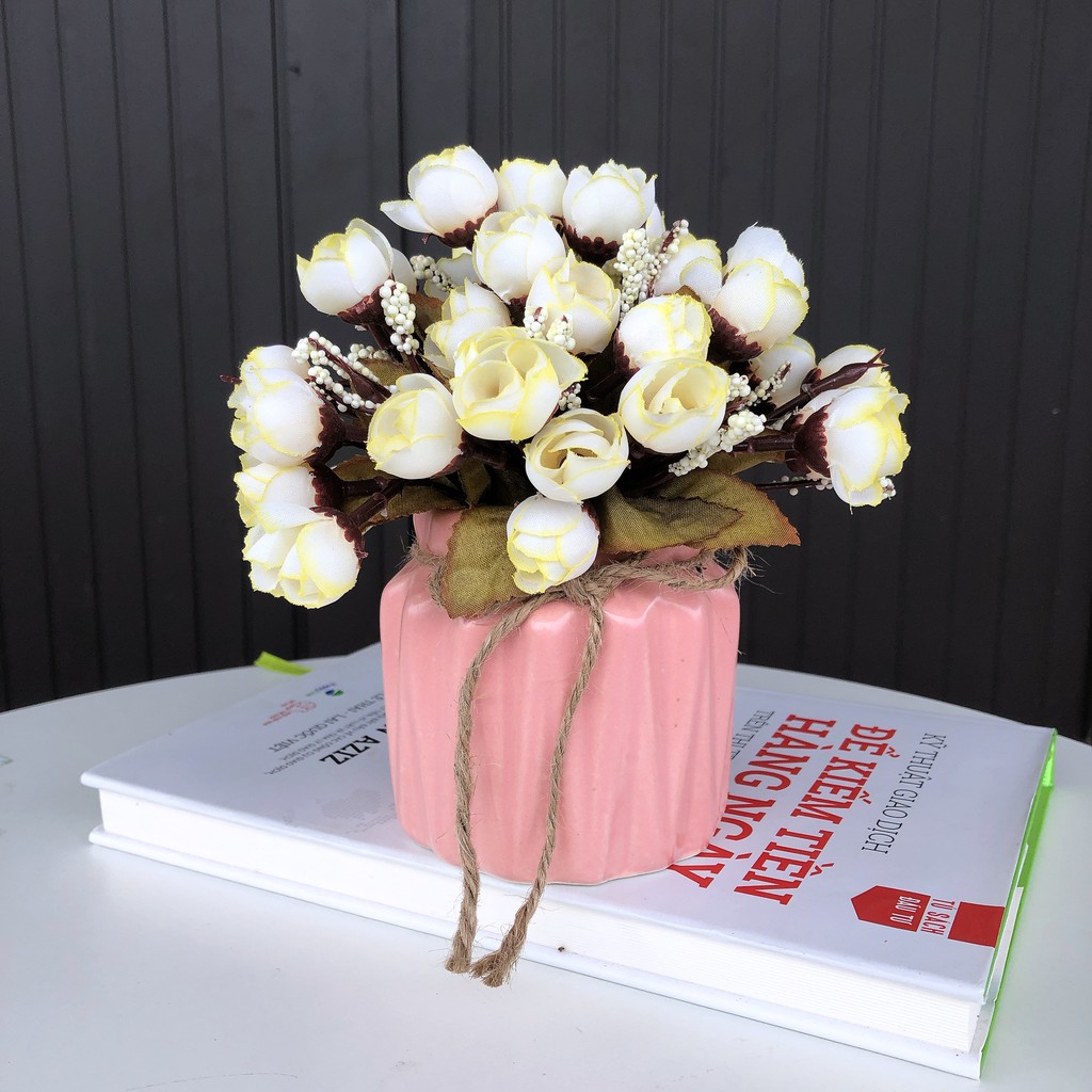 (Tặng nơ và xốp trắng) Bình Sứ trám Mini Cổ Thấp - Chậu hoa Bát Tràng có nơ cắm hoa