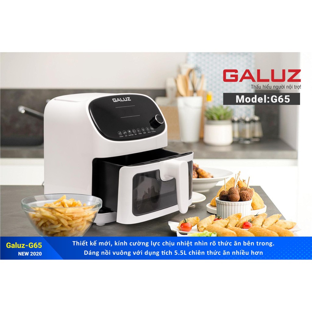 (Tặng nồi cơm Galuz) Nồi chiên không dầu điện tử GALUZ G-65 (G65) dung tích 5,5L, công suất 1800W, bảo hành 30 tháng