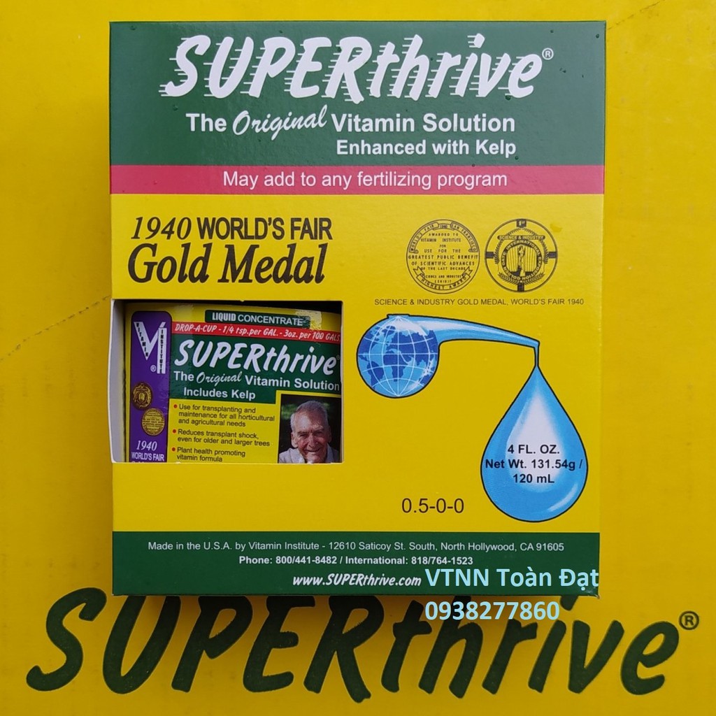 "Lưu ý: lô sản xuất này chai Superthrive không kèm theo tấm bìa giấy phía sau chai. xin cảm ơn."Super Thrive bổ xung 50 hormon làm phá vỡ sự chậm phát triển của cây. Làm cây mau ra rễ, chồi, hoa,… Cực tốt cho lan.