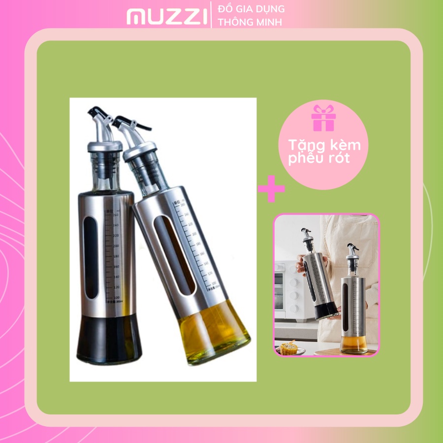 [ Tặng Phễu Rót ] Chai thủy tinh đựng dầu ăn 500ml - Bình rót dầu ăn, mật ong, nước mắm dành cho nhà bếp