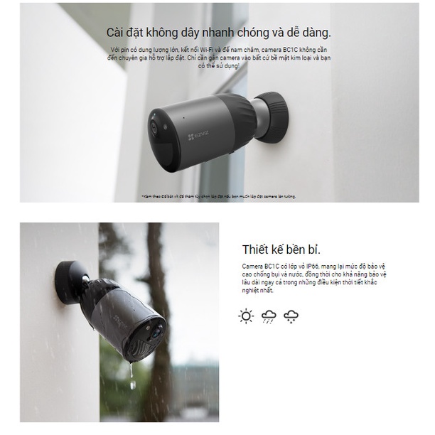 Giới thiệu [Tặng Pin Mặt Trời] Camera Wi-Fi EZVIZ BC1C Không Dây, 1080P, Pin Sạc 7800 mAh, Bộ Nhớ Trong 32GB - Hàng Chính Hãng