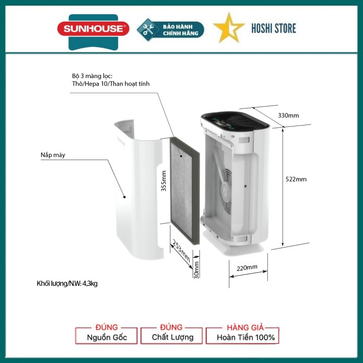 Thương hiệu: Sunhouse | Xem thêm các sản phẩm Máy lọc không khí của SunhouseMô tả ngắn