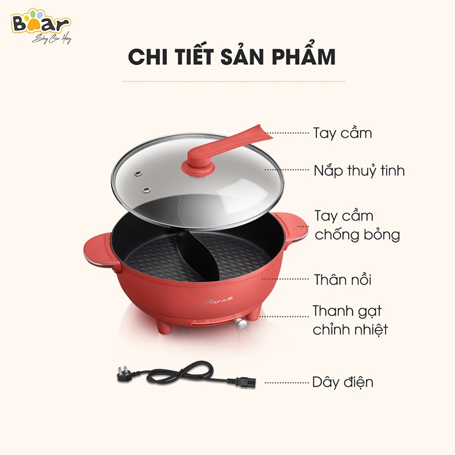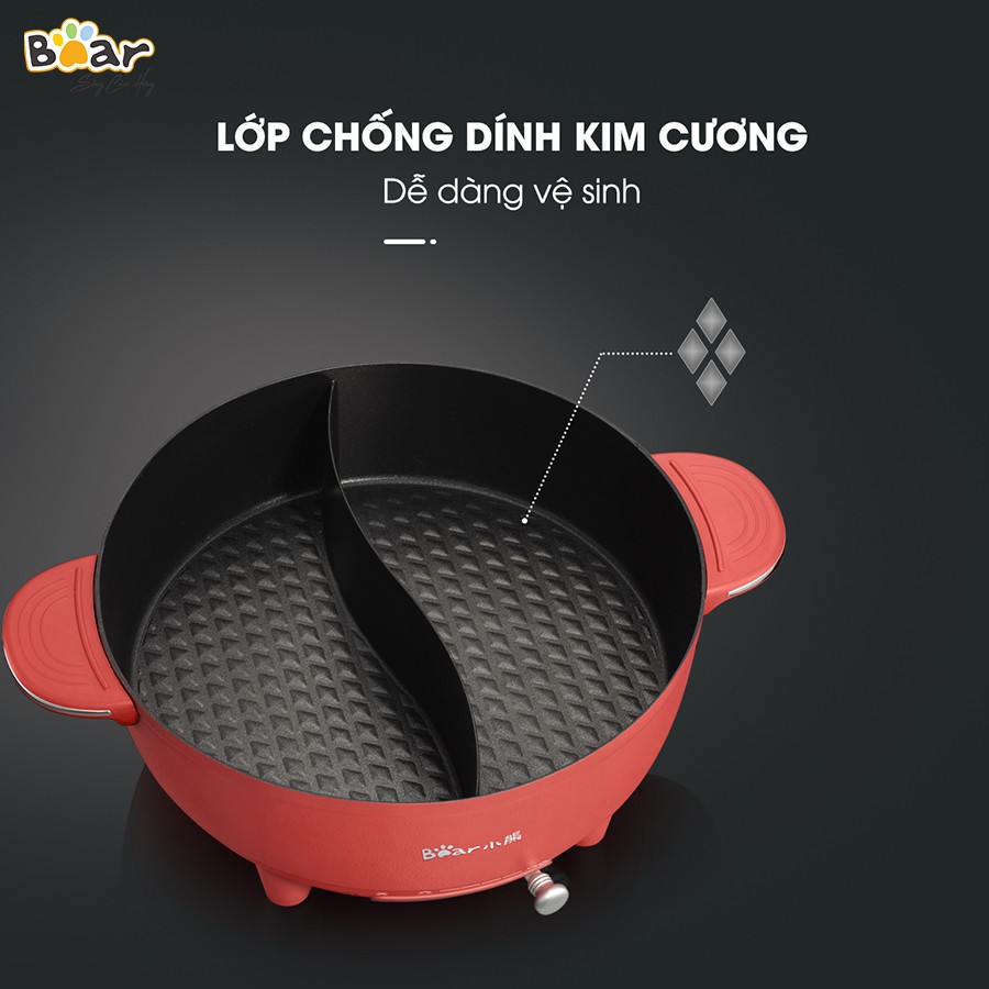 Giới thiệu [ Tặng quà 299k] Nồi lẩu uyên ương Bear DHG-B60R6 6L - BẢN QUỐC TẾ - Nấu lẩu 2 ngăn tiện dụng - Bảo hành 18 tháng