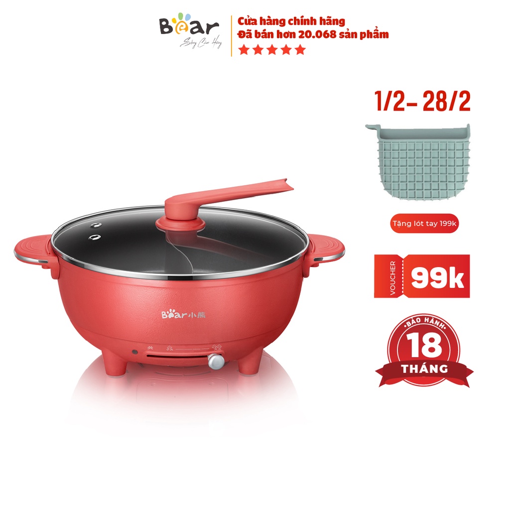 [ Tặng quà 299k] Nồi lẩu uyên ương Bear DHG-B60R6 6L - BẢN QUỐC TẾ - Nấu lẩu 2 ngăn tiện dụng - Bảo hành 18 tháng