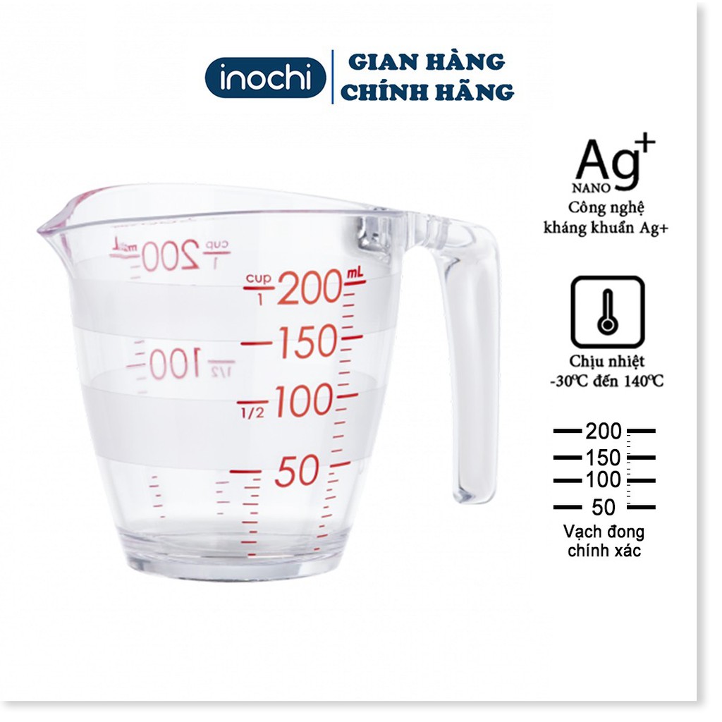 Cốc đong - YOKO INOCHI nhựa định lượng 200ml dung dịch dùng trong nấu ăn pha chế nhựa nguyên sinh kháng khuẩn Ag+ CD=== CAM KẾT CỦA INOCHIVIETNAM ===