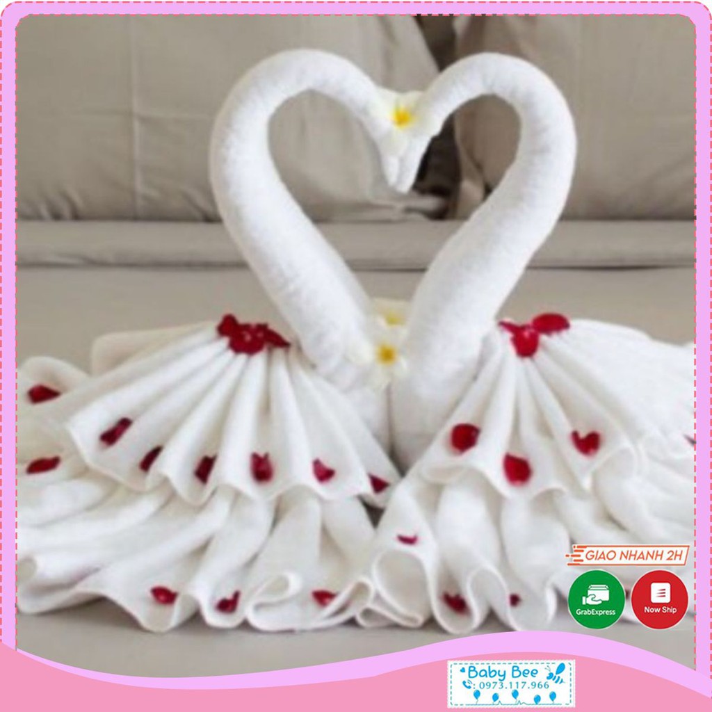{Tặng quà}Combo 4 khăn gấp thiên nga phòng cưới (đã gấp sẵn) tặng kèm 100 cánh hoa hồng đỏ