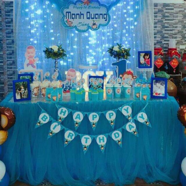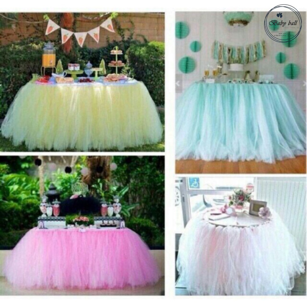 Khăn quây bàn trang trí sinh nhật 1 phần tạo điểm nhấn cho bữa tiệc thêm bắt mắt và trang trọng hơnChất liệu vải voan