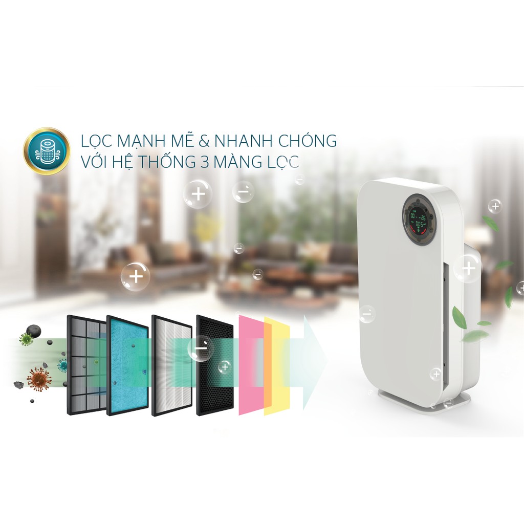 + Màng lọc HEPA đa lớp: Lọc sạch những tác nhân gây dị ứng, bụi mịn PM2.5 đến 99%, và kể các các dạng bụi mịn siêu nhỏ với kích thước 0.05 micron.