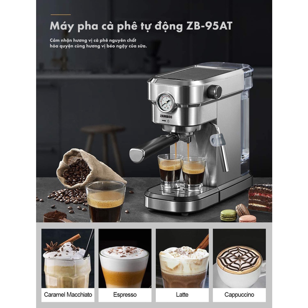 Giới thiệu [Mã ELHADEV giảm 4% đơn 300K] Tặng quà Máy pha cà phê Espresso Zamboo ZB-95AT (15bar/1350W)Tặng 500gram Supepwer Coffee