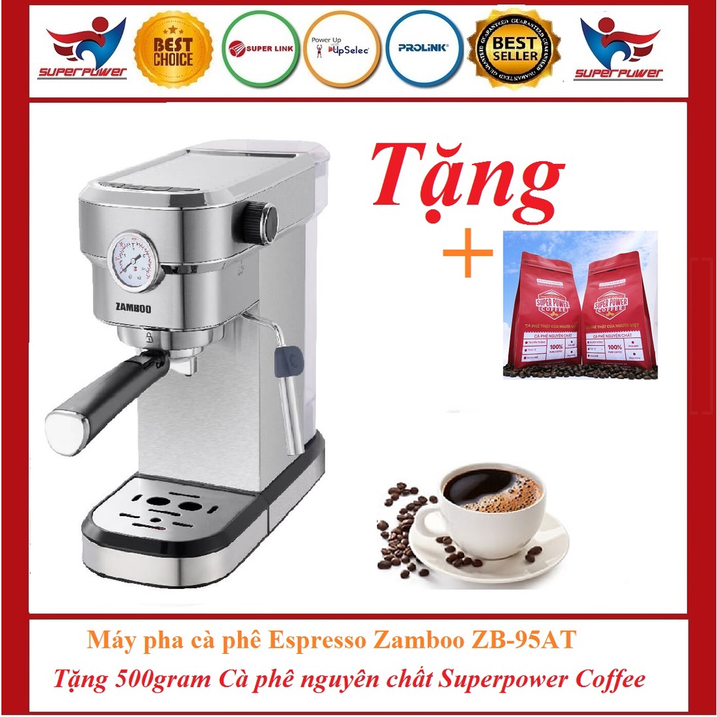 [Mã ELHADEV giảm 4% đơn 300K] Tặng quà Máy pha cà phê Espresso Zamboo ZB-95AT (15bar/1350W)Tặng 500gram Supepwer Coffee