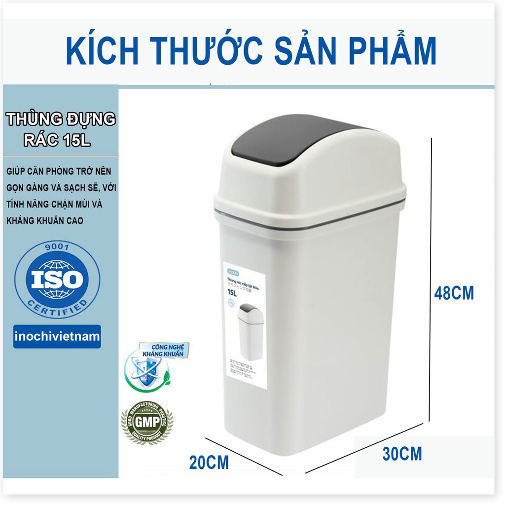 === CAM KẾT CỦA INOCHIVIETNAM ===[CHÍNH HÃNG] Thùng Rác Thông Minh,Nhựa Nắp Lật Inochi 5/10/15 Lít Rất Đẹp Làm Sọt Rác Văn Phòng, Khách Sạn, Đựng Rác