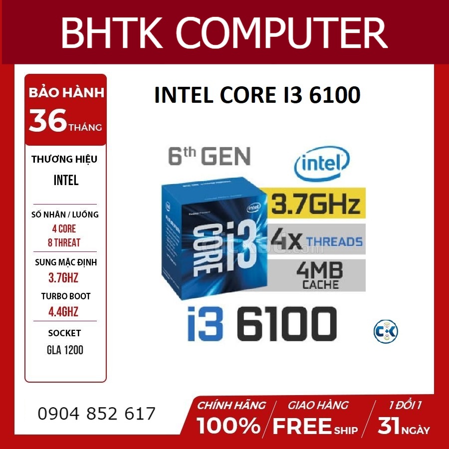Giới thiệu [Tặng quạt tản] Bộ vi xử lý CPU intel core i3 6100 Chip chuyên game quốc dân hàng tháo quán game nguyên hộp BH 6 tháng