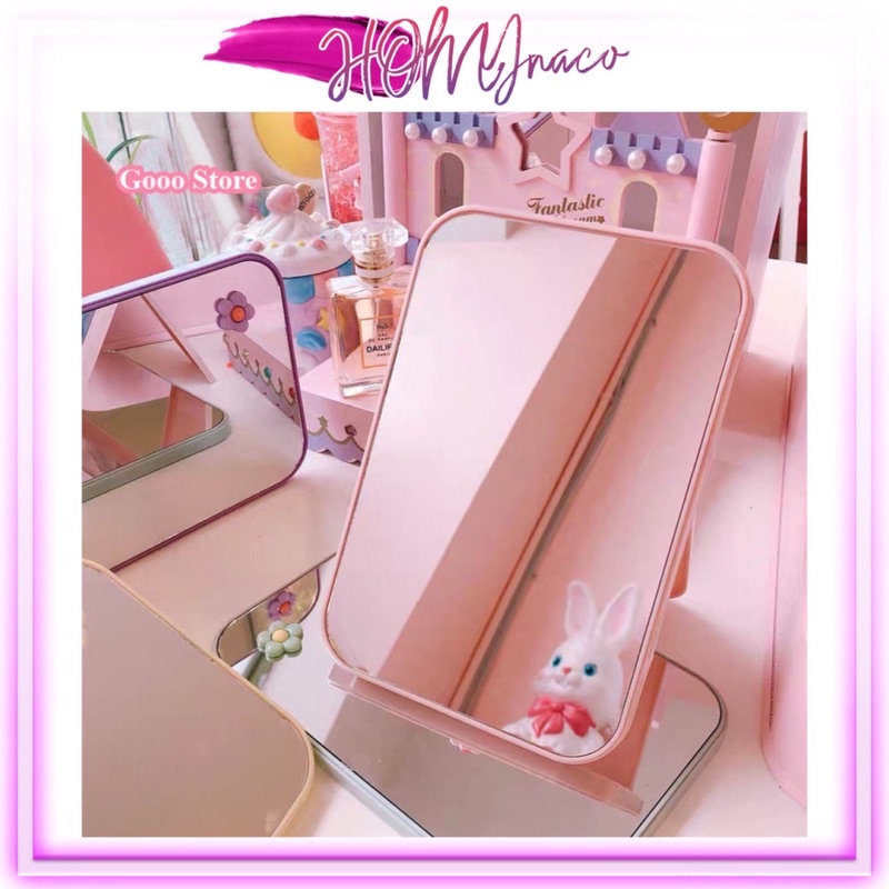 [Tặng Sticker] Gương để bàn trang điểm gấp gọn Hàn Quốc HOMYnaco xinh xắn dễ thương Nhựa Dễ Thương