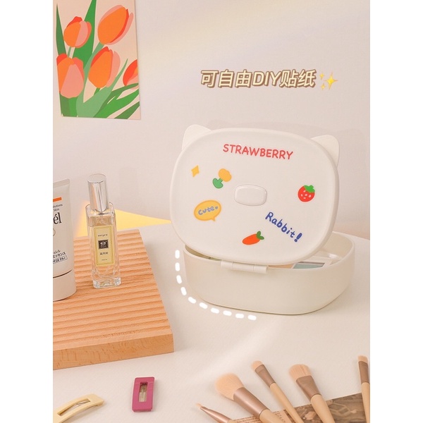 [Tặng Sticker] Gương tai mèo cute - Hộp đựng đồ makeup có gương tiện lợi đi du lịch