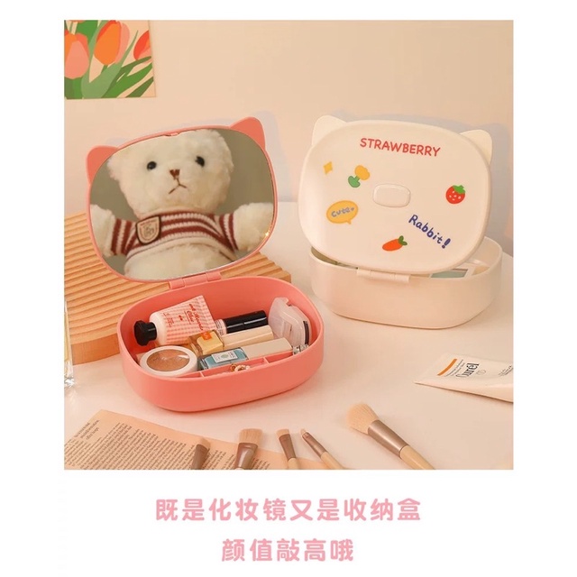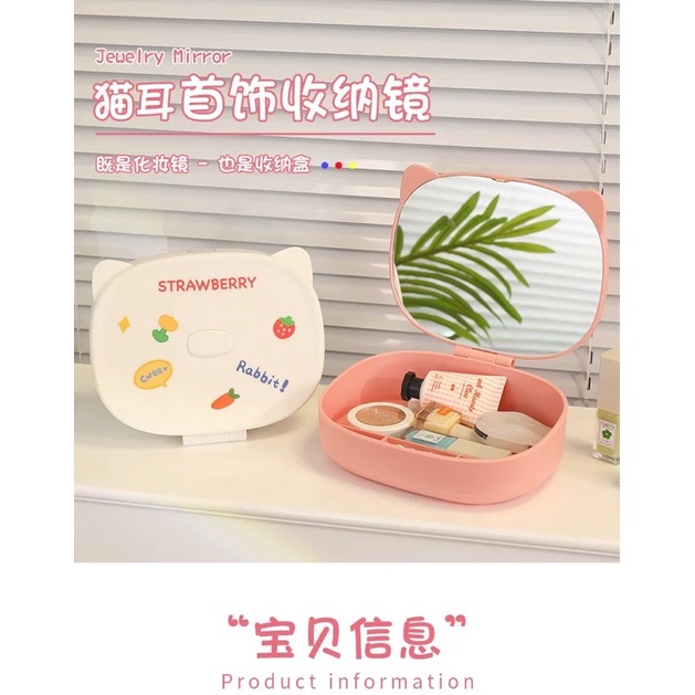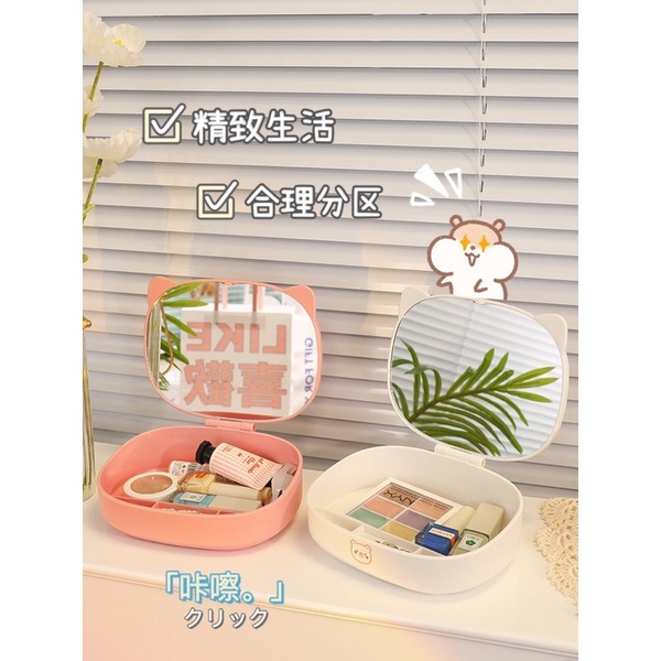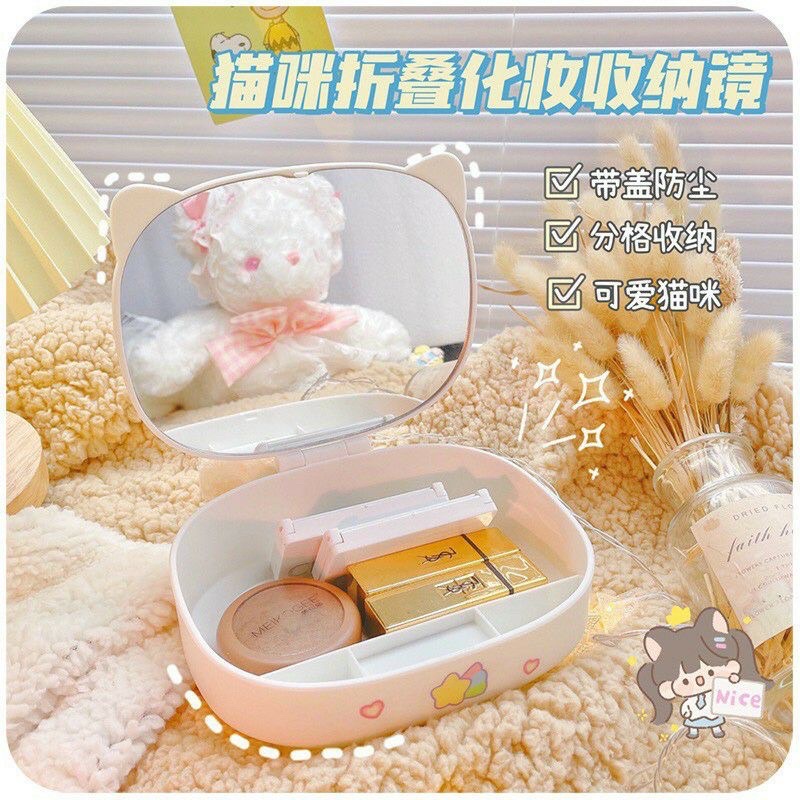 Nhà cửa & Đời sống > Trang trí nhà cửa > Gương || [Tặng Sticker] Gương tai mèo cute - Hộp đựng đồ makeup có gương tiện lợi đi du lịchCòn hàng