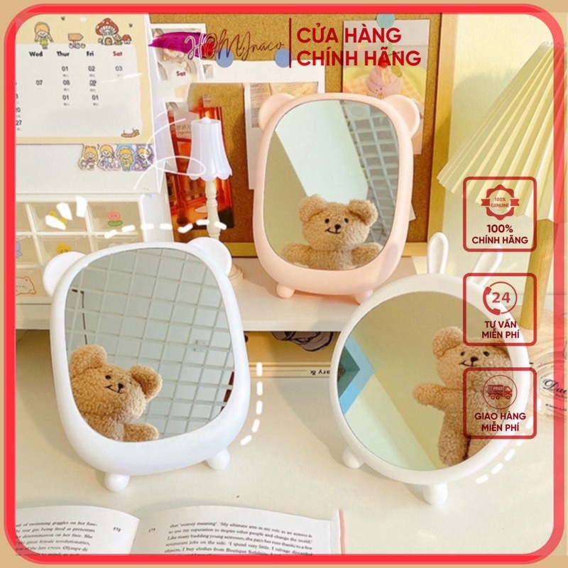 GƯƠNG ĐỂ BÀN TAI GẤU SIÊU XINH🍀 Gương soi để bàn trang điểm màu sắc trang nhã, độ sắc nét cao, hình ảnh chân thực.