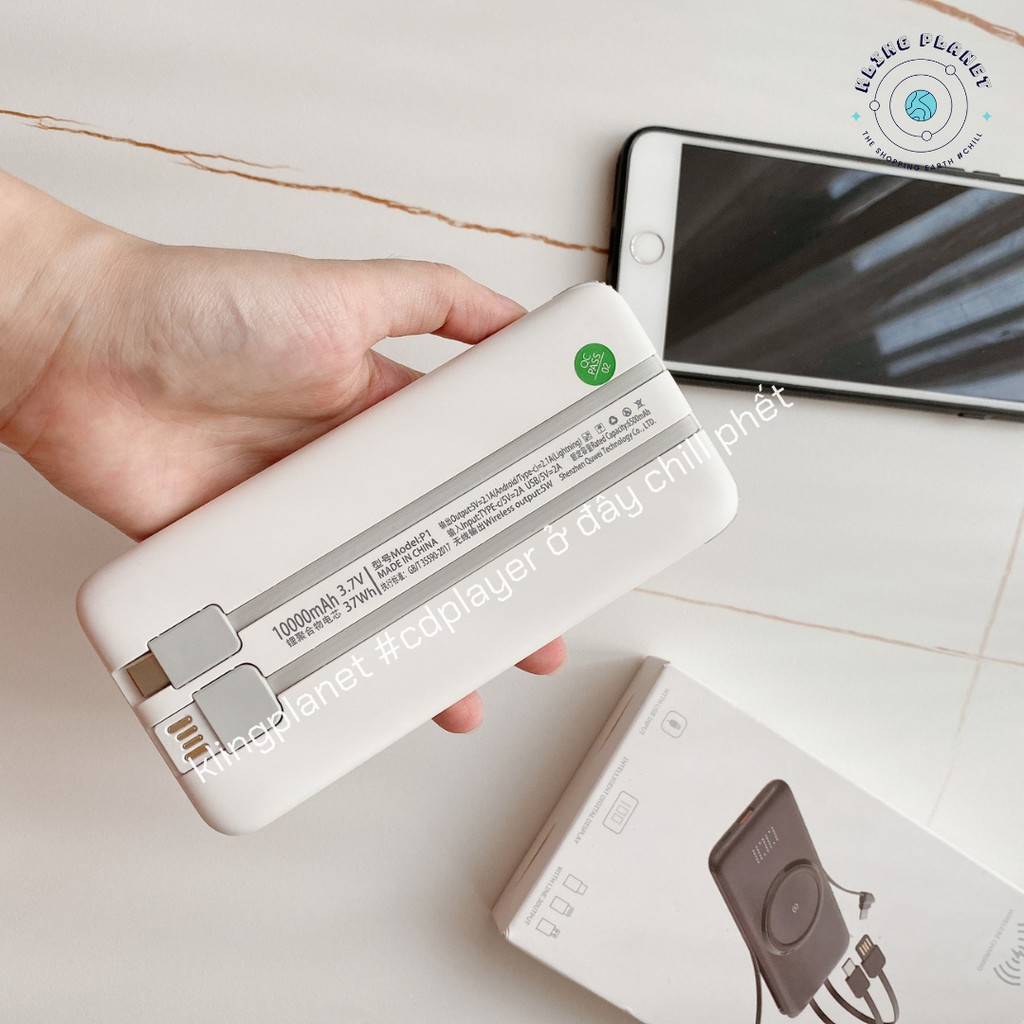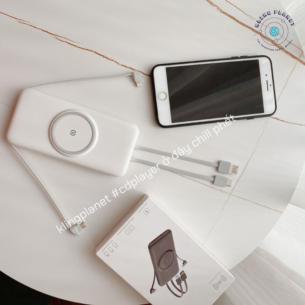 Giới thiệu [Tặng STICKER] Pin sạc dự phòng không dây siêu mỏng có màn hình và 4 đầu sạc