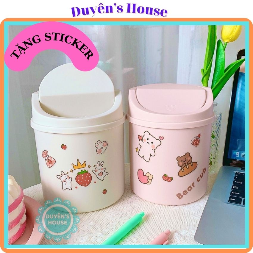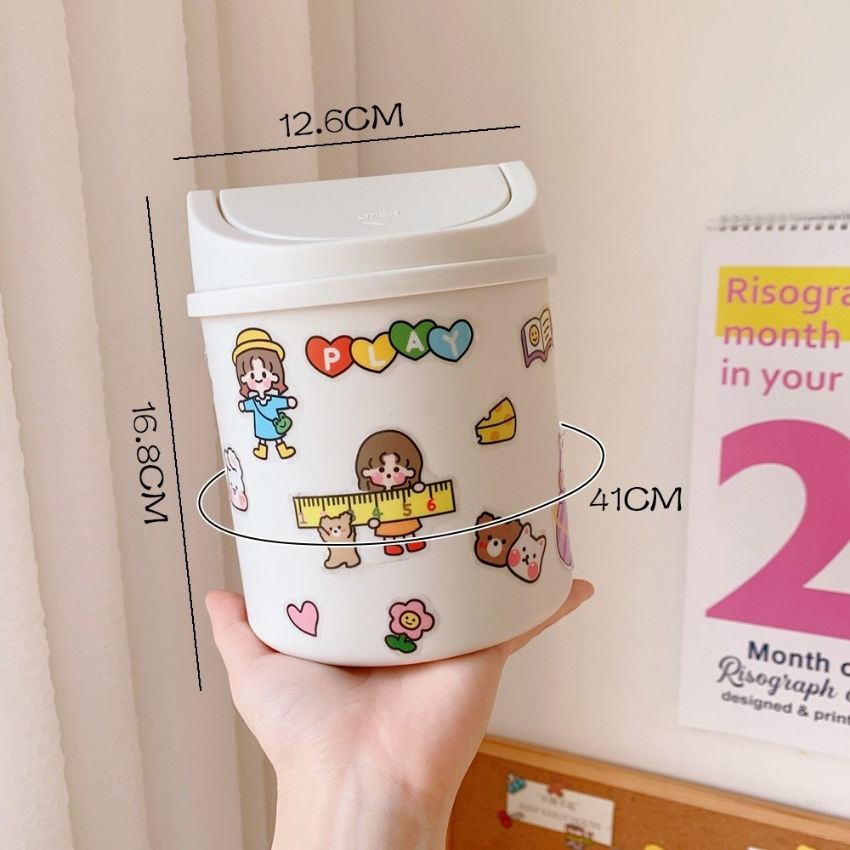 [Tặng Sticker] Thùng Rác Mini Nắp Lật Để Bàn Xinh Xắn, Đựng Rác, Dụng Cụ Văn Phòng Phẩm - P089
