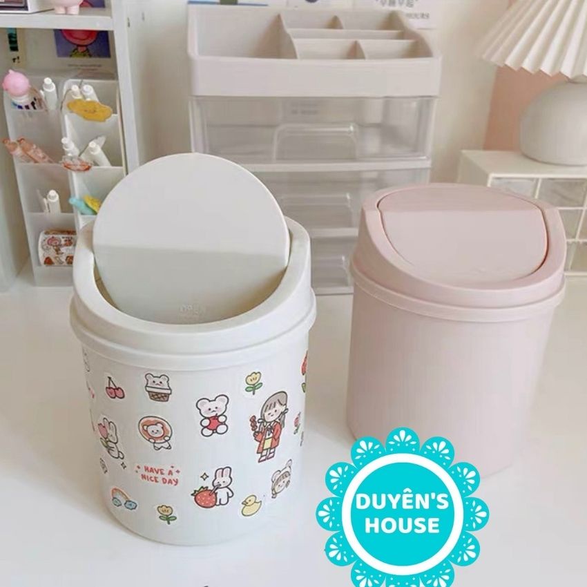 Nhà cửa & Đời sống > Dụng cụ chăm sóc nhà cửa > Thùng rác || [Tặng Sticker] Thùng Rác Mini Nắp Lật Để Bàn Xinh Xắn, Đựng Rác, Dụng Cụ Văn Phòng Phẩm - P089Còn hàng
