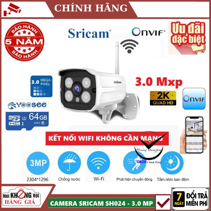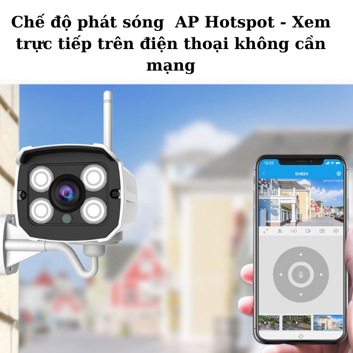 Giới thiệu ( TẶNG THẺ NHỚ 64G YOOSEE ) Camera wifi ngoài trời Srihome Sh024 , phát hiện chuyển động , AP HOTSPOT , camera an ninh