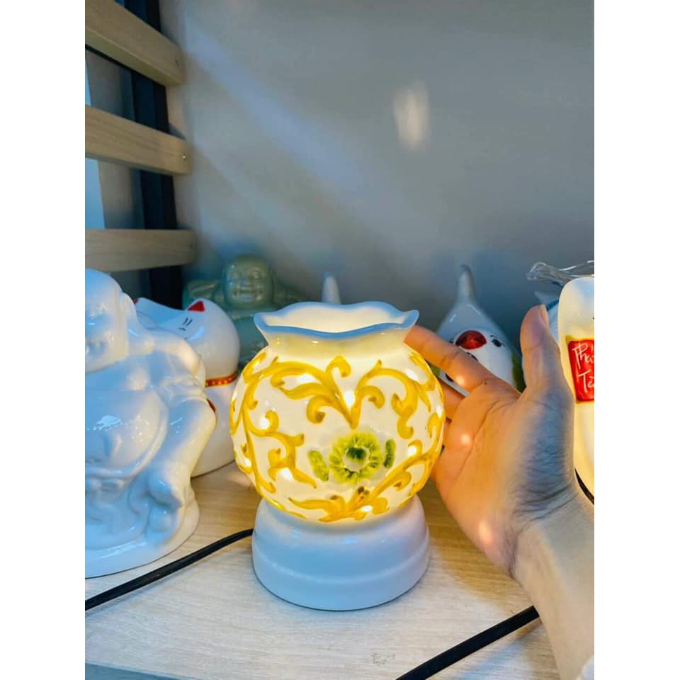 Đèn xông tinh dầu gốm bát tràng -Khuếch tán tinh dầu, khử mùi, đuổi muỗi, khử ẩm tạo mùi thơm cho phòng- Đèn xông tinh dầu Bát Tràng là sản phẩm của làng nghề gốm sứ Bát Tràng nổi tiếng với chất liệu gốm thấu quang chịu nhiệt. Đèn có mẫu mã và họa tiết tinh tế, đẹp mắt, có thể dùng làm quà tặng trang trí nội thất như: phòng khách, phòng ngủ, phòng tắm, phòng làm việc, phòng trà…