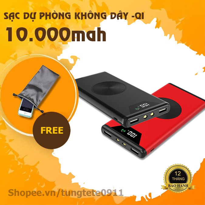 Điện Thoại & Phụ Kiện > Pin sạc dự phòng > 10000 - 20000mAh || [TẶNG TÚI ĐỰNG] Pin Sạc Dự Phòng Không Dây Power Bank Chuẩn QI 10.000mAh - Hỗ trợ sạc nhanh, sạc không dâyCòn hàng