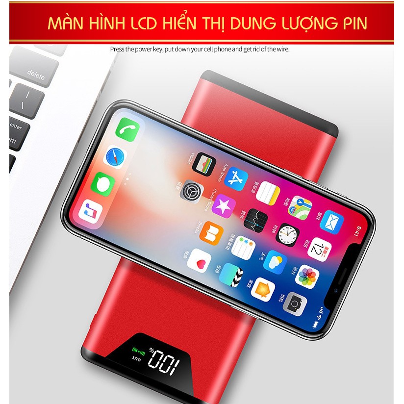 Giới thiệu [TẶNG TÚI ĐỰNG] Pin Sạc Dự Phòng Không Dây Power Bank Chuẩn QI 10.000mAh - Hỗ trợ sạc nhanh, sạc không dây