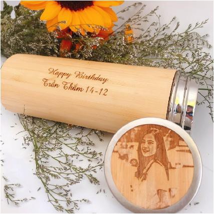 Bình giữ nhiệt gỗ in / khắc hình ảnh, tên, câu chúc lên sản phẩm => nội dung in / khắc hoàn toàn miễn phí tạo lên món quà lưu niệm đẹp dành tặng bạn bè, người thân, đối tác.