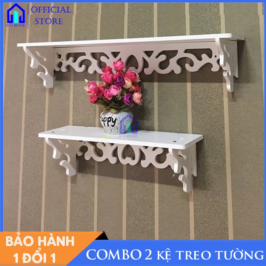 Nhà cửa & Đời sống > Nội thất > Kệ & Giá || [TẶNG VÍT] Combo 2 kệ treo tường thanh ngang hoa văn trang trí phòng khách cực đẹp IHW-04 - Ico HomeCòn hàng