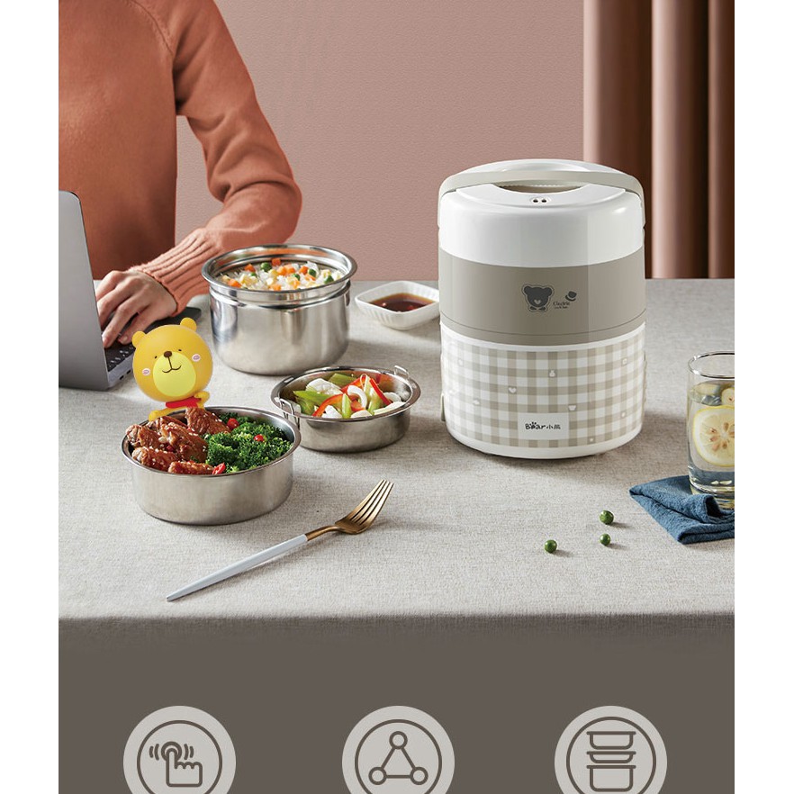 Giới thiệu [Tặng zắc 3 chấu] Hộp cơm cắm điện Bear hẹn giờ DFH-A20D1, sử dụng để nấu, hâm nóng, giữ nhiệt cho thắc ăn