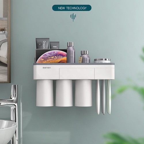 [TANGMOCTREO] KỆ ĐỂ BÀN CHẢI ĐÁNH RĂNG ĐỦ LOẠI, Cốc Hút Từ Tính Nhả Kem Đánh Răng Tự Động Không khoan tường cao cấp