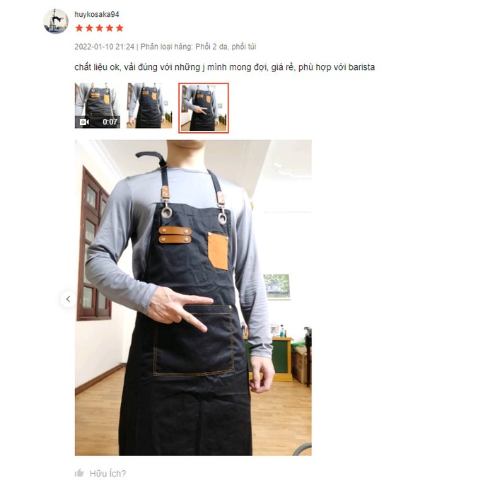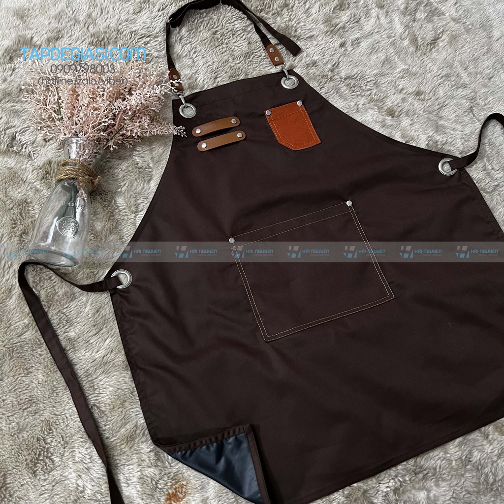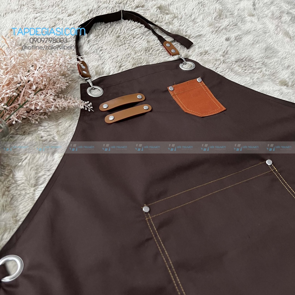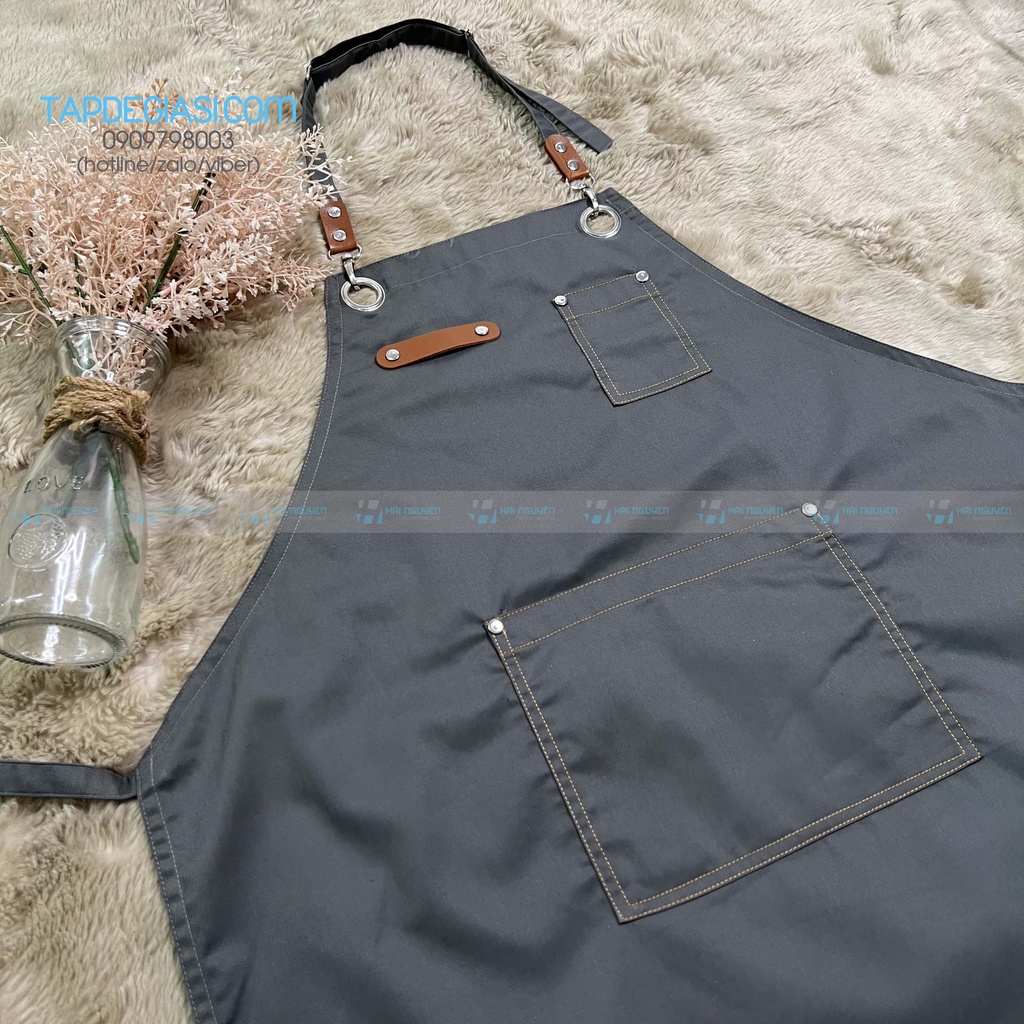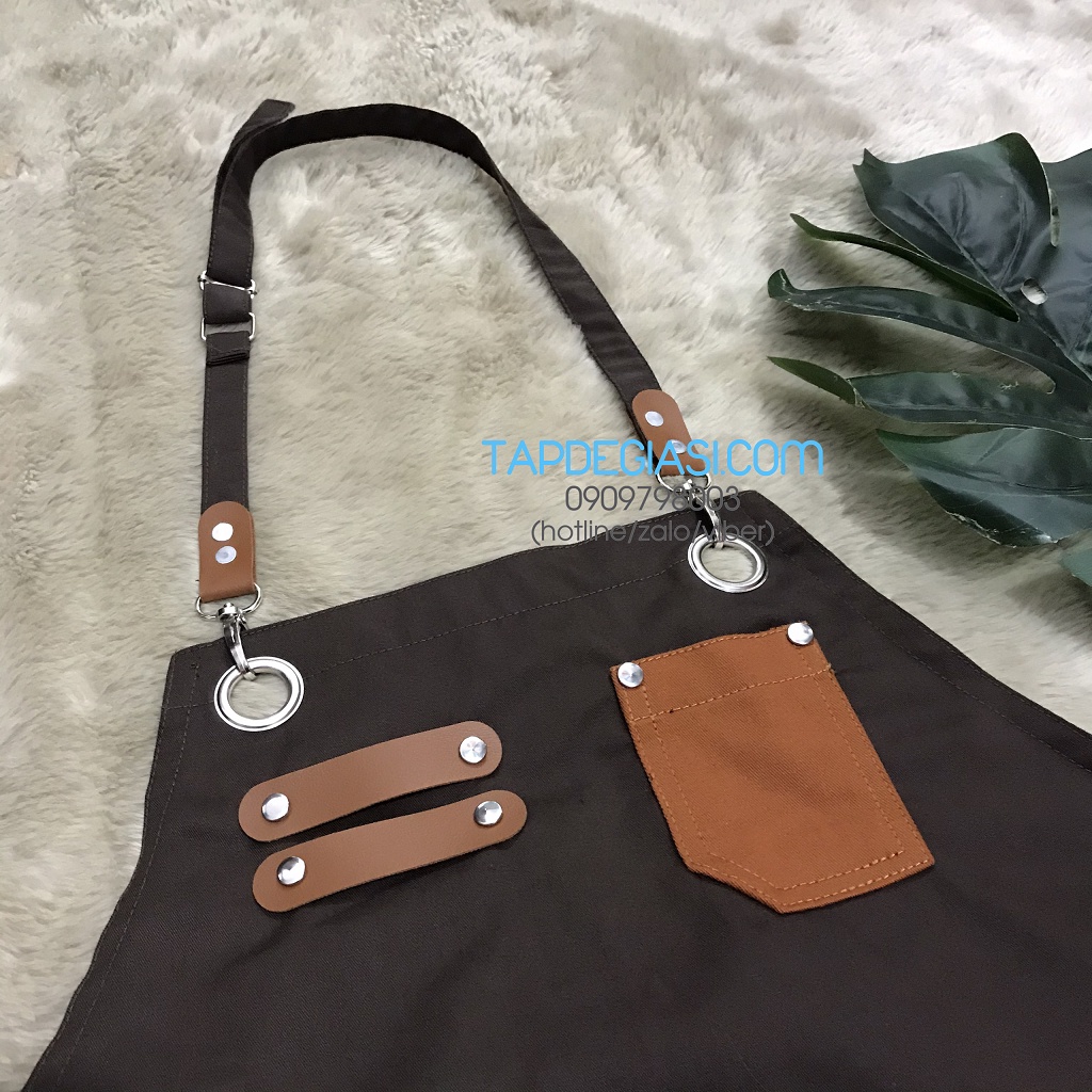- Quy cách: tạp dề yếm đính da, đính nút cao cấp, có tăng đơ giảm độ dài, có 1 túi trước đựng sổ order