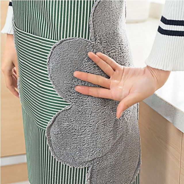 - Tạp dề chống thấm nước, thấm dầu có thiết kế khăn lău hai bên eo vô cùng tiện lợi. Chất liệu nhung san hô mềm mại có khả năng thấm hút tốt và mềm dịu với da tay của bạn.