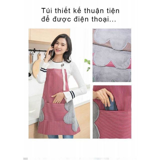 Tạp dề chống thấm nước, chống thấm dầu thiết kế 2 khăn lau tay San Ho phong cách Hàn Quốc.#Giá chỉ 65k
