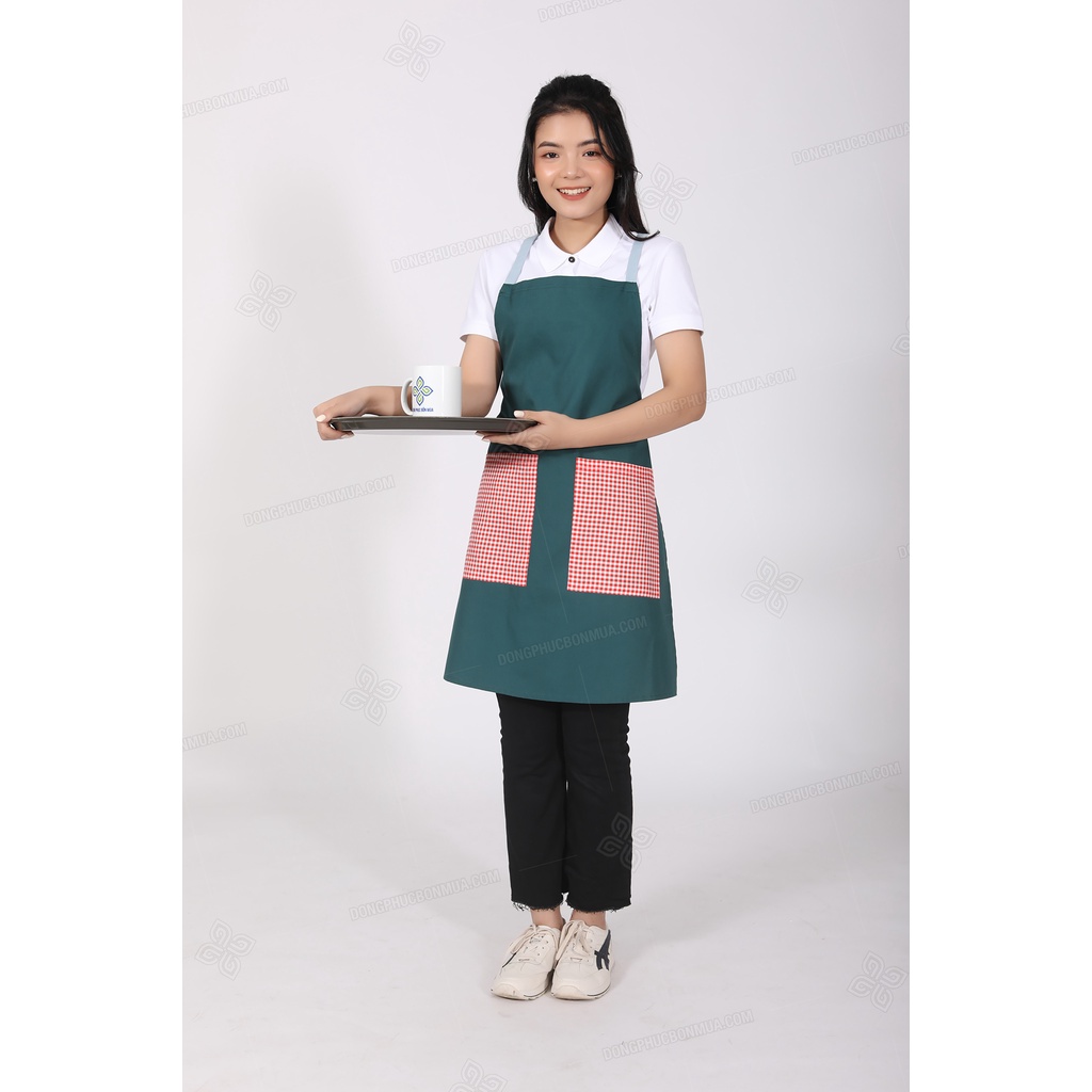 ✔️ Quy cách: Tạp dề yếm, có nút tăng giảm độ dài, có túi tiện dụng để đựng sổ ghi chép, sổ order, điện thoại, ipad…