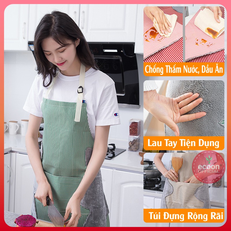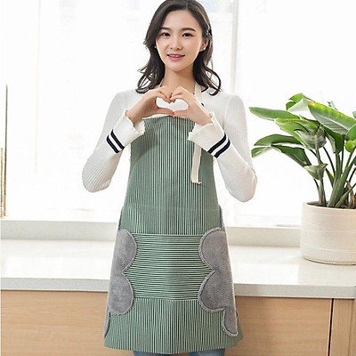 - Tên sản phẩm: Tạp dề kẻ sọc hoa có chỗ lau tay, chống thấm nước- Kích thước: 72*70 cm (kích thước mở rộng)
