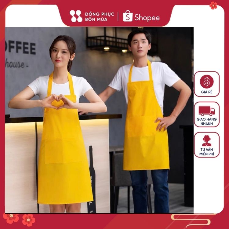 Tạp dề kaki chuyên dùng cho nhà hàng, spa, nail, thẩm mỹ viện - hàng đẹp, may kỹ- Chất liệu: vải kaki cao cấp mềm mại
