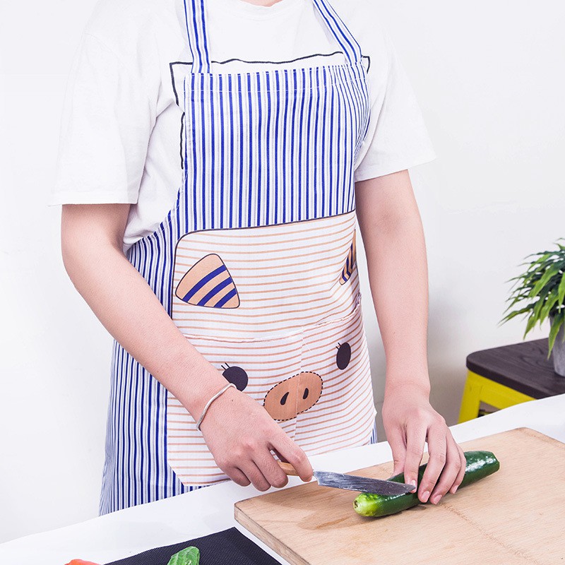 Tạp dề chống bẩn, chống dầu mỡ, có ngăn trước bụng đựng môi, muỗng, đũa, có thể giặt sạch dễ dàng, tạp dề hình sọc