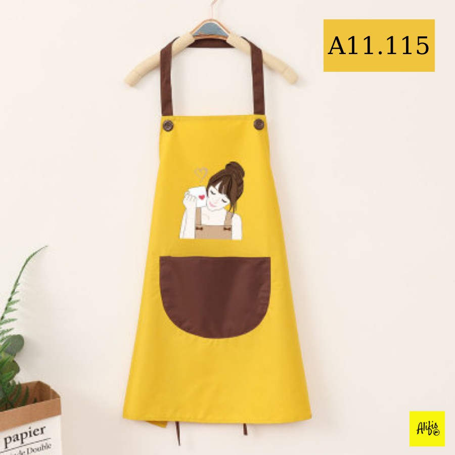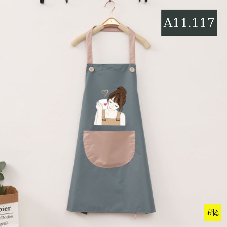 - Tạp dề họa tiết cô gái dễ thương và thiết kế tiện dụng khiến cho việc bếp núc trở nên thú vị hơn