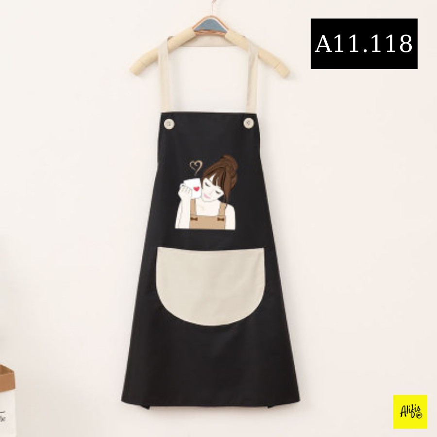 Tạp dề chống nước, có túi đựng điện thoại – hình thiếu nữ xinh đẹp – phong cách Hàn Quốc