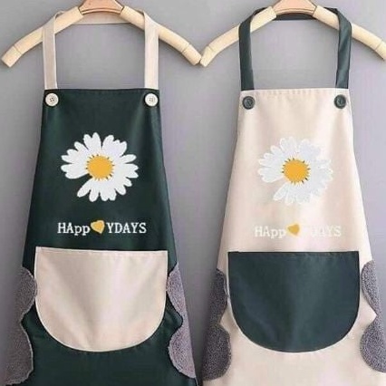 + Tạp dề màu sắc nhã nhặn, trang trí hoa cúc dễ thương và thiết kế tiện dụng khiến cho việc bếp núc trở nên thú vị hơn