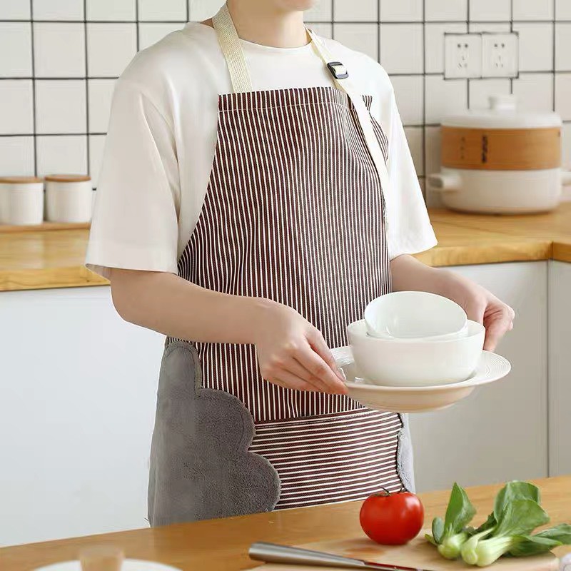 - Kích thước tạp dề lớn ôm hết cơ thể giúp bảo vệ bạn sạch sẽ 100% khi nấu nướng