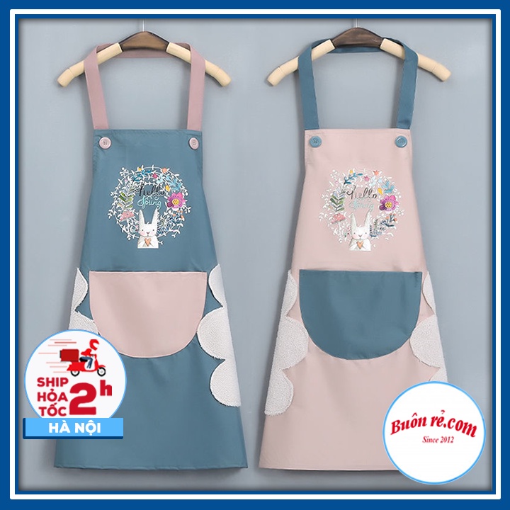 Giới thiệu Tạp dề chống thấm có túi đựng điện thoại tiện ích họa tiết thỏ dễ thương năng động 01519