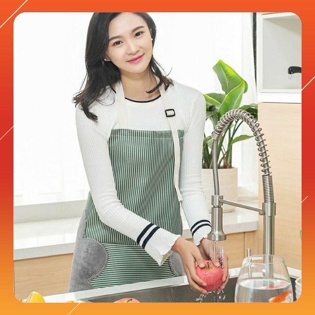 - Tạp Dề Chống Thấm với thiết kế thông minh khi được may kèm vải bông 2 bên hông giúp bạn lau tay nhanh chóng và sạch sẽ khi nấu ăn. Bên cạnh đó chiếc tạp dề này còn thiết kế cho bạn chiếc túi to để đựng điện thoại rất tiện lợi.