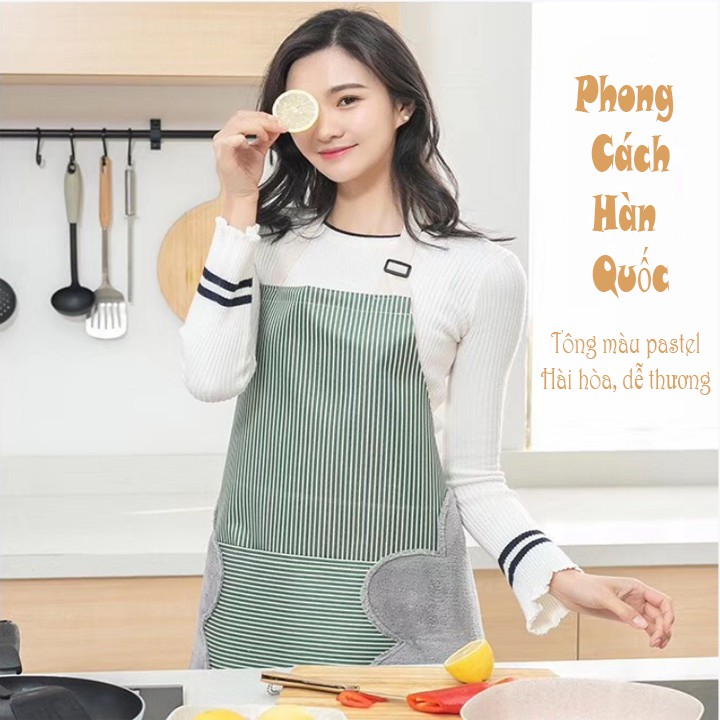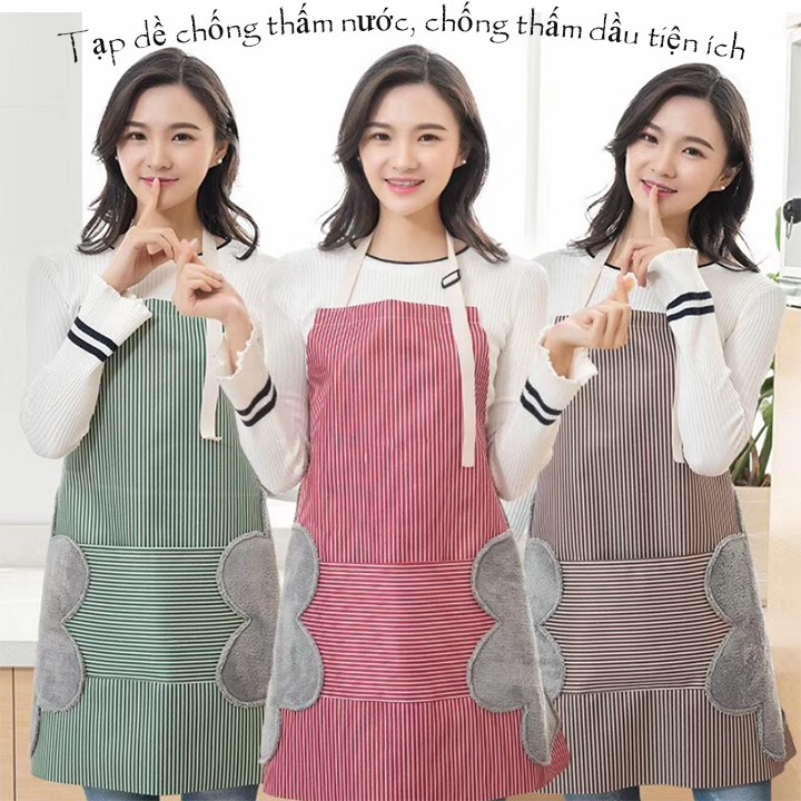 Giới thiệu Tạp Dề Chống Thấm - Loại đẹp, dày dặn thiết kế 2 khăn lau tay San Ho phong cách Hàn Quốc 00352
