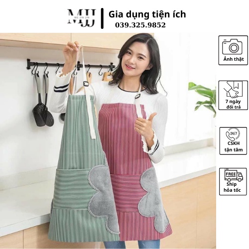 - Tạp Dề Chống Thấm với thiết kế thông minh khi được may kèm vải bông 2 bên hông giúp bạn lau tay nhanh chóng và sạch sẽ khi nấu ăn. Bên cạnh đó chiếc tạp dề này còn thiết kế cho bạn chiếc túi to để đựng điện thoại rất tiện lợi.