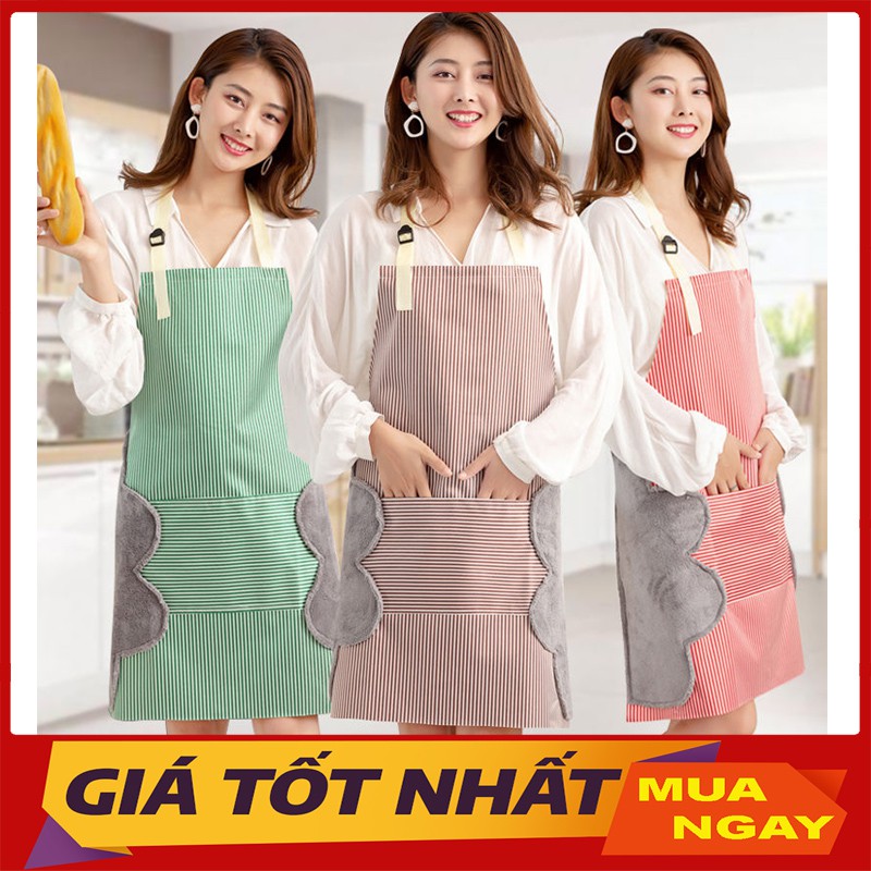 - Tạp Dề Chống Thấm với thiết kế thông minh khi được may kèm vải bông 2 bên hông giúp bạn lau tay nhanh chóng và sạch sẽ khi nấu ăn. Bên cạnh đó chiếc tạp dề này còn thiết kế cho bạn chiếc túi to để đựng điện thoại rất tiện lợi.