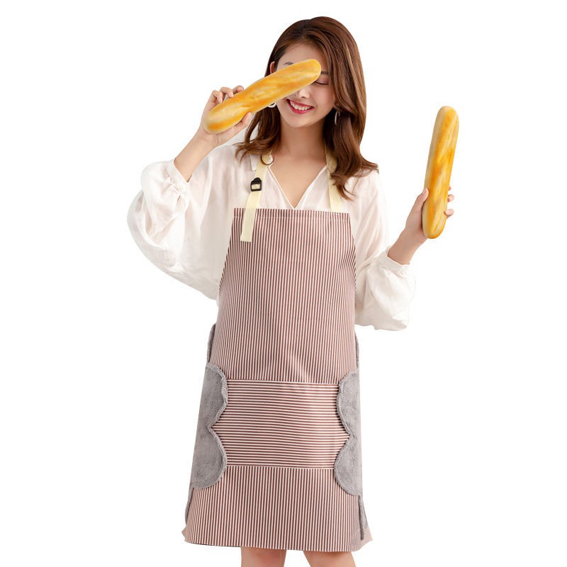 - Tạp dề được làm từ chất liệu chống thấm tốt nên bạn có thể thường xuyên lau chùi mà không sợ hỏng.
